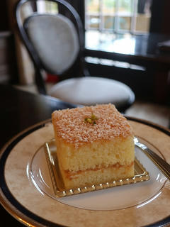 中東ってレモン食べるの?と思ったんですが、出てきたケーキはかなり端正な美しいスクエアケーキで、中東への解像度が低い私の理解でも「中東のイメージではないな」と感じたのですが、でもまぁよく考えたら中東に関する知識なさ過ぎなのでそもそも中東のスイーツのイメージが皆無だったし失礼ですね。