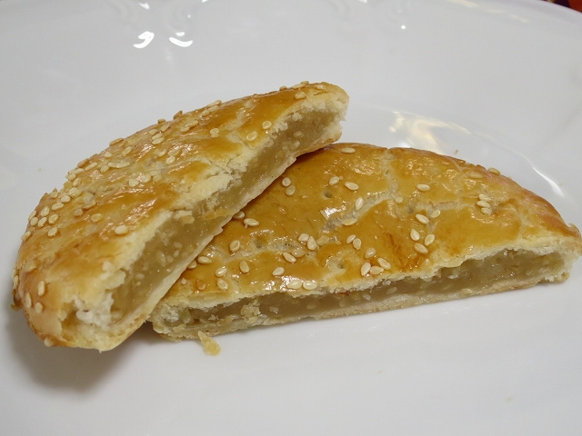 なんとなくみんな中国菓子って良いイメージが無いのか、手を伸ばしたがらない感じがしましたが、食べてみると、中に餅のような餡のような食感のペーストが入っていて、これがなかなかに美味しく、食べやすい菓子でした。