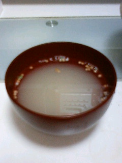 砂糖にポツポツと浮き実(お茶漬けに入ってるような丸いヤツ)が入っていて、砂糖汁を飲んでるイメージ。あ、もちろん即席汁粉系にはお餅は入っていません。