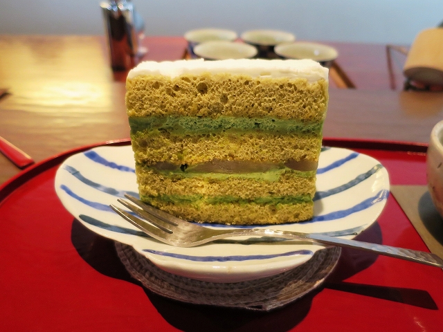 シュニッテンが分からないままですが、抹茶のクリームとスポンジが層になっていて、真ん中には抹茶の餡が挟んであります。