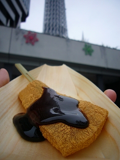 歩きながら写真撮りながら食べたら買ったばかりのジャケットに黒蜜が・・・!!(涙)
