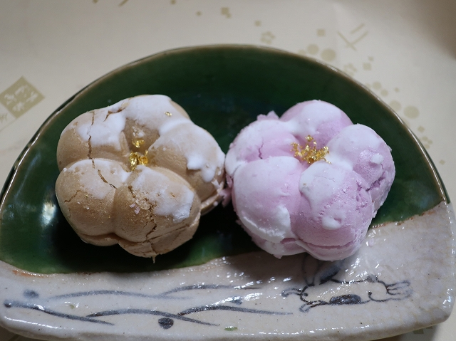 めちゃ上品で可愛らしい紅白の梅型の最中です。