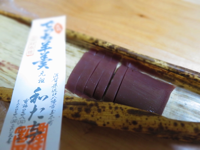 この羊羹、竹の皮で包まれていて何か風情があり、そしてかなり平べったい作りです。