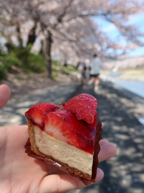 どうにも写真が下手で伝え切れないけど、桜を眺めながらのイチゴのタルトって、もう女子が好きなものが詰め込まれてる感じでテンション上がりますね。