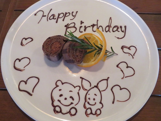 ただ、お祝いプレートだけは大したことなかった。メニューに載ってたデザート類はどれも美味しそうだったんだけど、プレートのミニロールケーキは、別にこれじゃなくても良かったかなという感じ。無料なので文句は言えないか。