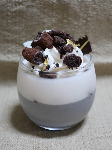 上の部分の黒いクッキーと柔らかく仕上げた生クリームが美味しかったです。