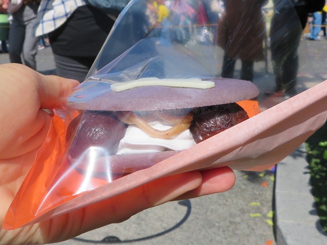 というわけで誕生日ケーキを用意する時間などないので、USJ内のミニオンパークにあるデリシャスミーというお店のクッキーサンドを誕生日ケーキの代用としました。