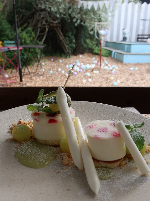 エディブルフラワーとメロンのレアチーズケーキ @FARMER'S KITCHEN
