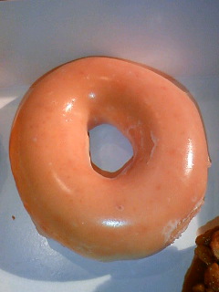 レジの手前で試食のドーナツを一つくれます。オリジナル・グレーズという、いわゆるプレーンのドーナツです。