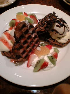 フルーツでクリスマスカラーってにくいね。全体的な彩りが結構気に入りました。ワッフル自体はもうちょっと熱々で出して欲しかったかな。アイスが溶けるくらい。