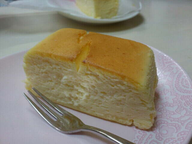 美味しそうと言っても遠目からしか見ていなかったので、どんなものかよく知らなかったのですが、ショートケーキサイズのスフレタイプのチーズケーキでした。