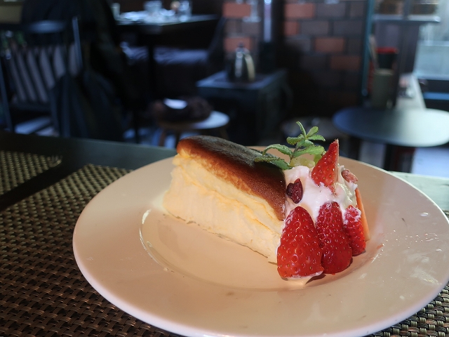 スフレチーズケーキを頼んだんですが、チーズの風味が強くて、スフレでふわふわなのにチーズのコクが前面に!