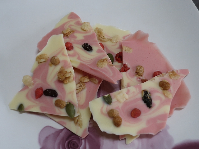 今年もバレンタインの季節になり、ようやくピンクの板チョコが店頭に並んだので(実はこの時期以外は売ってない)、リベンジ。