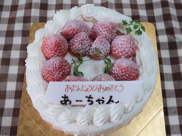 なんかこうクリームの甘さ加減といい、泡立て加減といい、またデザインも昔ながらだし、イチゴの酸っぱい感じとか、お名前プレートの今一つキレイに書けてない感じとか、ね。