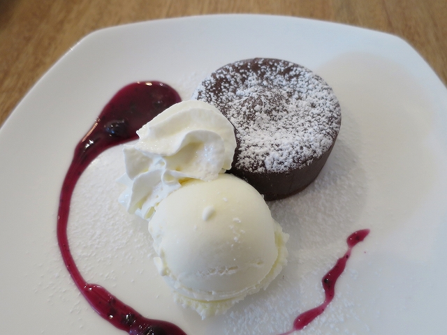肝心のフォンダンショコラは、ズブッとフォークを指したら、とろーりとチョコが出てくる絶妙の仕上がりで、とっても美味しかったです。