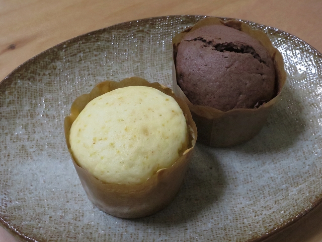 食べてみると、チョコマフィンは想定通りのココアのコクと濃厚さがあり、手で割った時のモロッと加減も良い感じ。