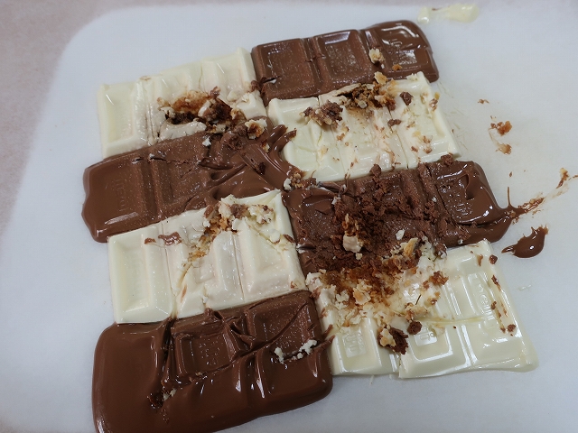 ホワイトチョコは一部溶けたけど、ミルクチョコは過熱し過ぎでガリガリに!!