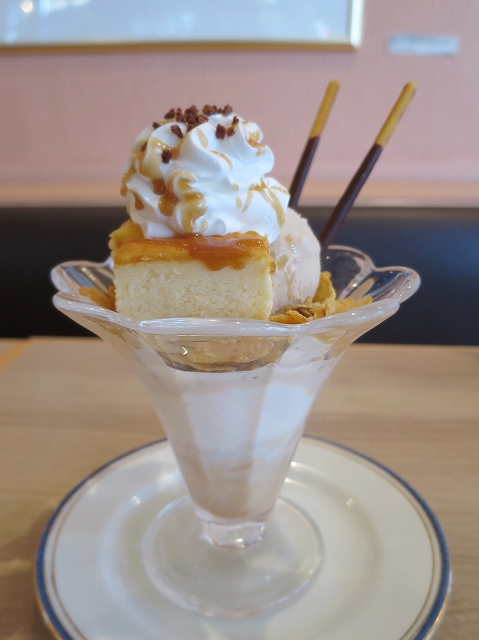 迷った挙句、ミルクティー(のアイス)とチーズケーキのパフェにしました。