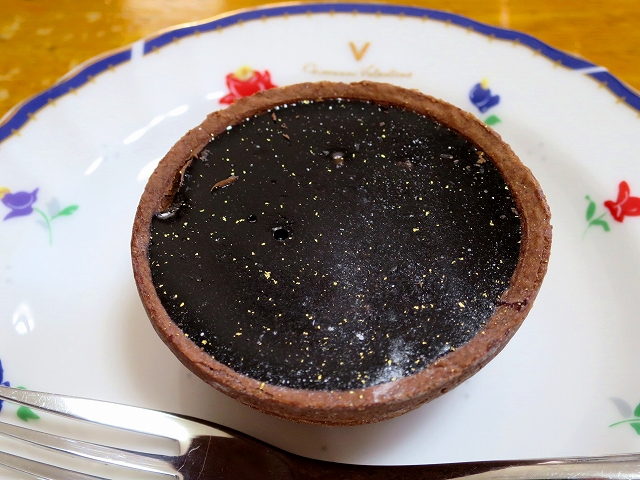 フォークで刺すとツヤっとした表面は柔らかく、口に含むと絶妙な甘さと、繊細なほろ苦さと、抜群の濃厚さで、いかにも贅沢なショコラタルトを食べているという感じ。