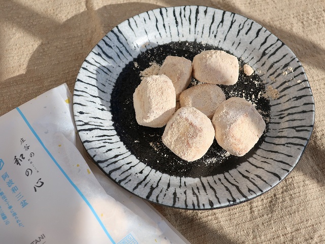 スノーボールクッキーは粉砂糖がふんわりとまぶしてあるのが一般的なんだけど、こちらの商品は、袋を開けると驚きの量の和三盆粉が贅沢に封入されていて、クッキーの形が粉でボワボワ(笑)