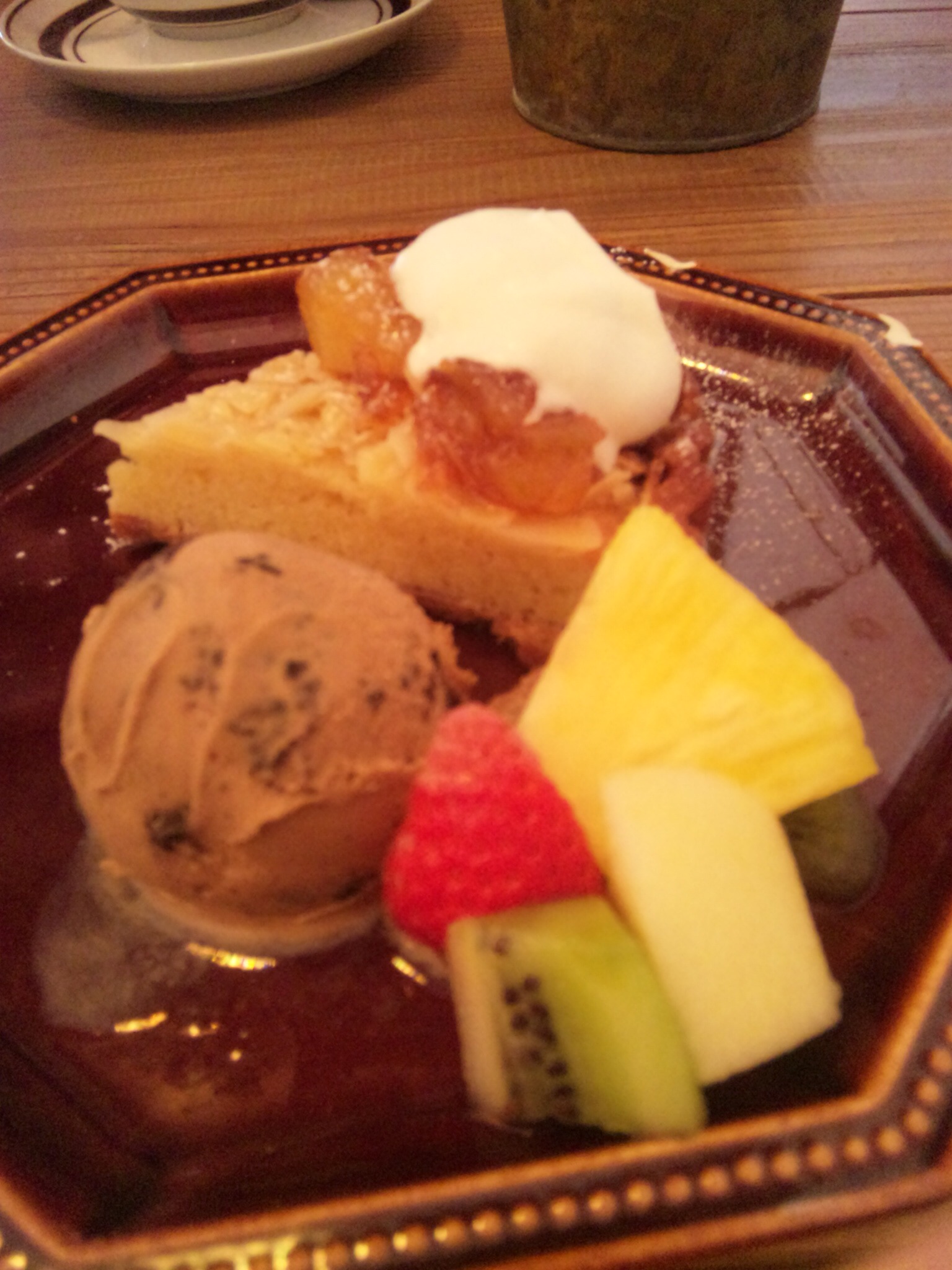 母と私でケーキとキッシュを一個ずつ頼みました。