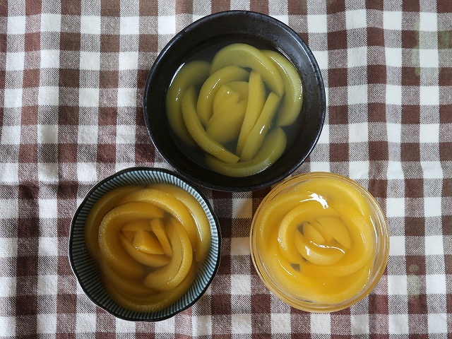 今回は黄桃を使いました。白桃だとまた違った印象になるかな。