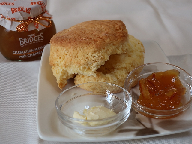 付け合わせも大事と考え、わざわざ同フェアにて「ロダス」のクロテッドクリームと「ミセスブリッジズ」のマーマレードジャムも買ってたんですが、大正解。