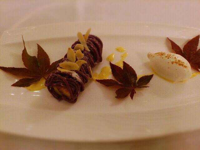 正確にはメニューに紫芋のタルト 何とかかんとか 何とか添えって書いてあったような気がしますが忘れました。というかよく読んでません。