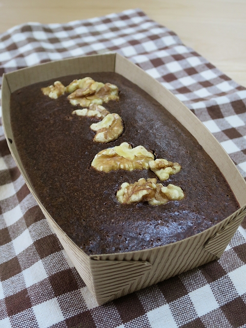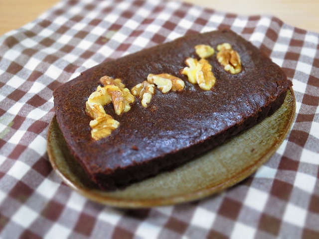 豆腐と板チョコ一枚分のチョコと卵を使い、あとは小麦粉、片栗粉、カカオ、牛乳などを少量ずつ足す感じ。