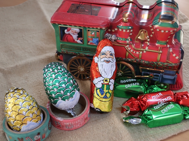 意匠の可愛いサンタと松ぼっくりは娘に取られたので私には角形しかなかったけれど、食べてみると普通に美味しいチョコでした。