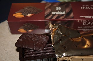 neuhaus→ノイハウスと読むらしいですが、ネットで調べたら何と日本にもショップを出していました。150年続くベルギーチョコの老舗のようです。HPによるとベルギー王室御用達!らしいですよ。空港で安売りされてたけど。