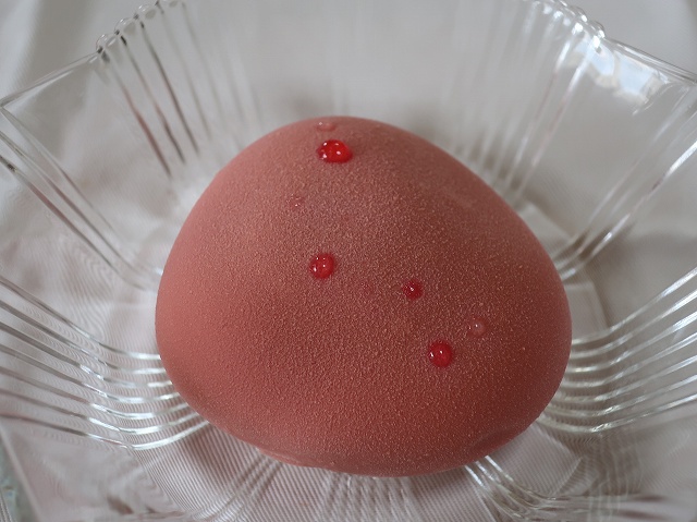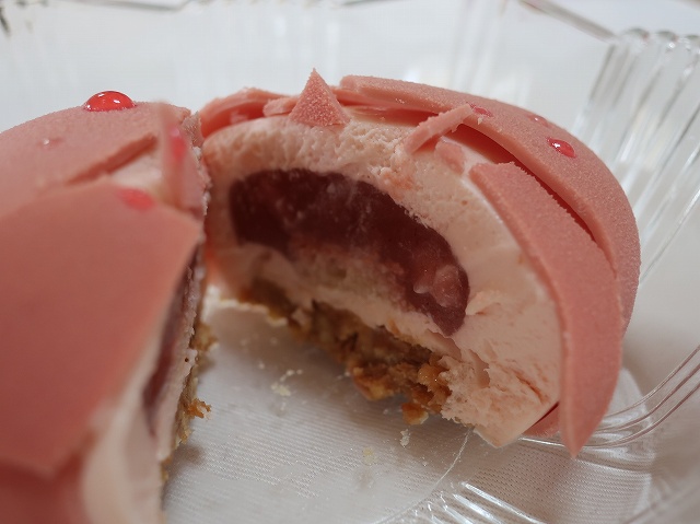 中を割ると、イチゴ大福のように白いムースの中に赤いジュレが。