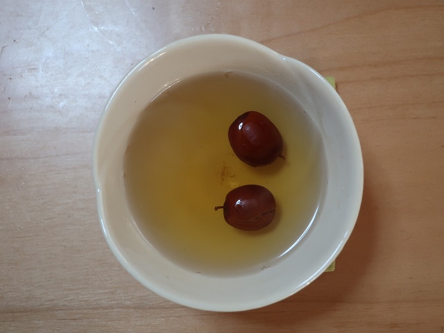 作り方は多分、干しナツメを水で戻しただけ。数時間~1日くらい?