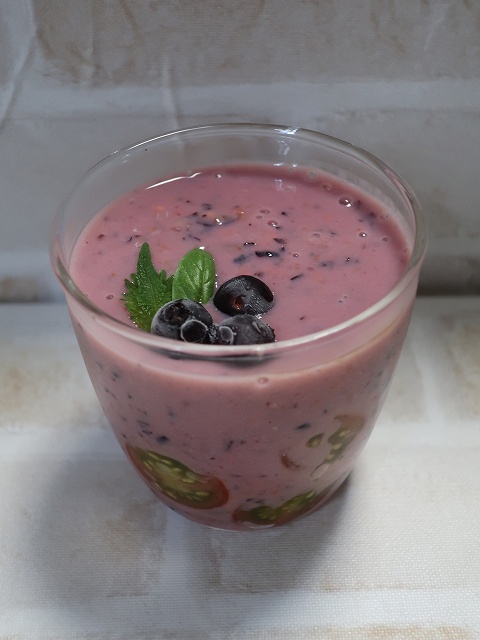 トマトとブルーベリーでキレイな紫色になります。