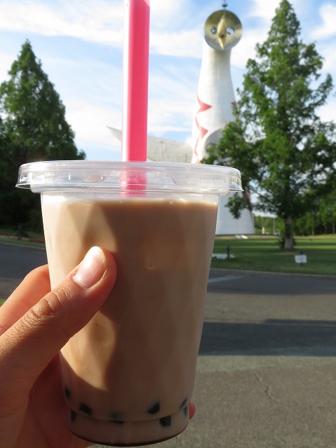 息子のチョイスでチョコミルクティーのタピオカドリンクを注文。