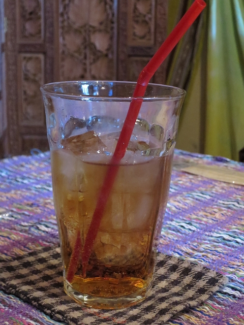 お店の前もアジアンな置物とか置いてあって南国ムードだったけど、中に入ると珍しい木彫り風の椅子だったり、衝立だったり、エスニックな織物がかかっていたりと、ゆるーいエキゾチックさが素敵なお店でした。