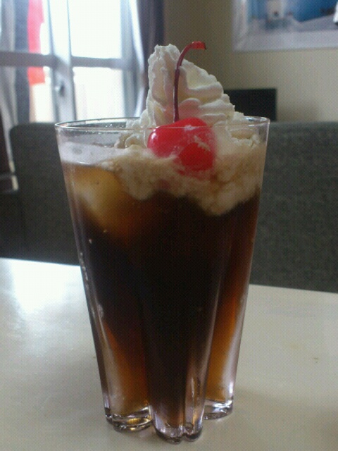 バニラエッセンスを振ったコーラにクリームとサクランボを乗せたオシャレな飲み物。