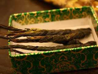 茶葉を見てみるとこよりのように、葉を細く丸めてあります。持ち運びしやすくするためにこうなったらしいのですが、うゎすごい手間。