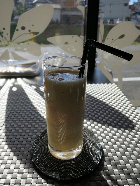 出されたものは特になんのフルーツが入っているのかはよく分かりませんでしたが、白くてとろっとしていて、とてもよい気分で飲めました。わりと甘めでおやつがわりになるくらいです。