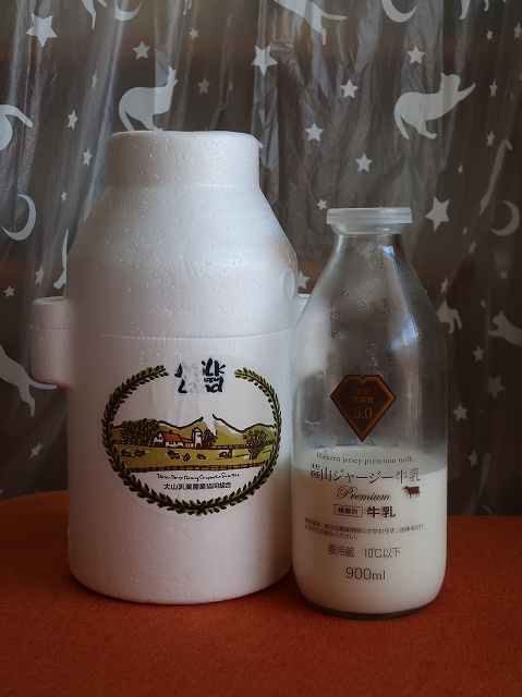 途中に立ち寄った吉備SAで、お土産購入ついでに目についたこの高級牛乳、なんと900ml瓶一本1,190円、購入してみました。