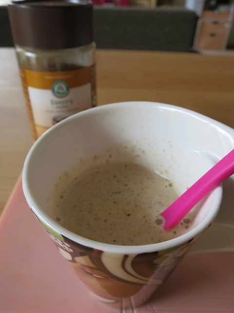 お湯で溶くとコーヒーほどのしっかりした風味はなく、かといってアッサリしていて飲みやすいというわけでもなく、何か微妙な苦さのイマイチな味。