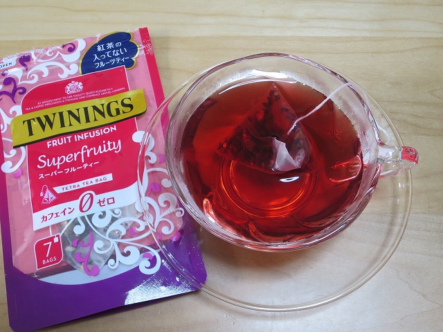 見た感じハーブティーぽいんですが、パッケージには「紅茶の入っていないフルーツティー」という記述が。