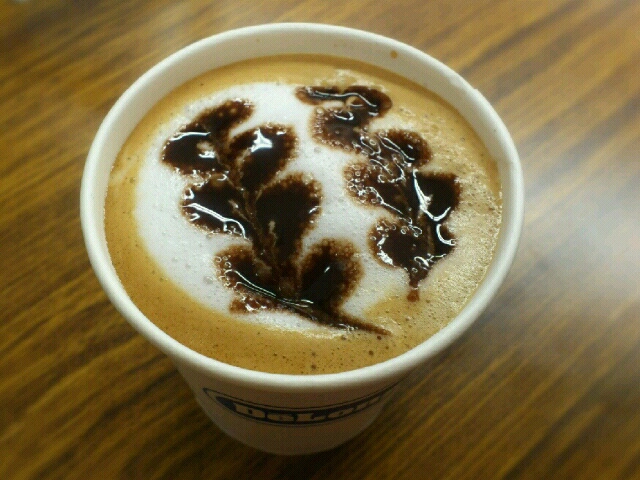 カフェラテ (チョコレートシロップのラテアート)