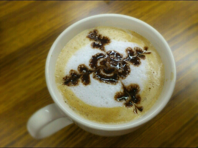 私は何も考えずじゃぶじゃぶミルクを注いだけど、割合きれいに泡が乗って、絵柄もサイズの過不足なしでけっこう上手に描けました。時間がかかったのでチョコシロップがにじんできてしまったのが少し残念。にじむのはシロップを使う以上仕方のないことらしいので、急いで作って急いで飲む!が鉄則らしいです。