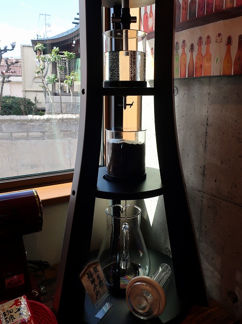 確かに、入り口の出窓に大きなウォータードリッパーが置いてあり、ポタポタと1滴ずつコーヒーが入ってました。