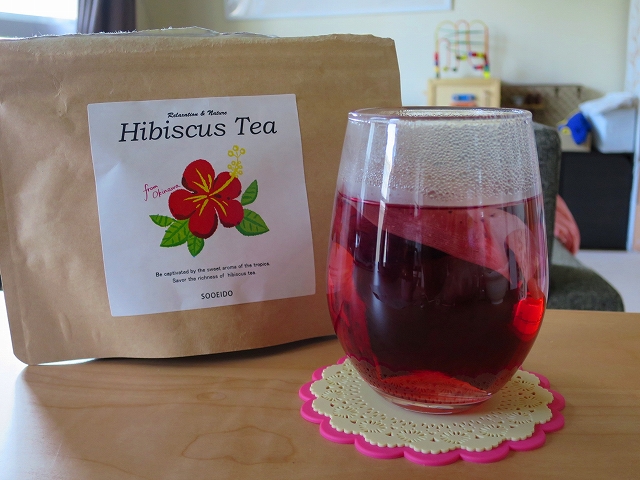 そう、ハイビスカスのハーブティー。見た目鮮やかな赤でとってもオシャレなんですが、とにかく酸っぱいんですよね・・・・。