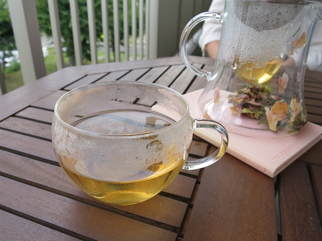 昨日今日で、私の妹が初めて我が家に遊びに来てくれたので、うちのベランダテラスでこのハーブティーをごちそうしました。