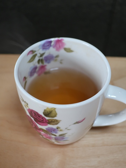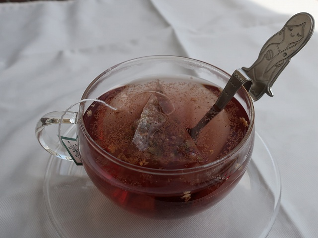 もっと放っておくと、最後は普通のハーブティーらしいというか、黄色っぽい茶色っぽい色になります。