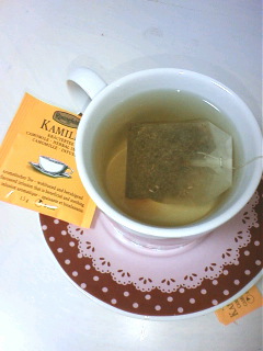 今回はKamille。袋の裏には日本語でカミツレと書いてあります。何のことかと思ったら、何のことはない、カモミールティーのことでした。英名カモマイルがオランダでカミッレになり、日本に渡ってきたときに和名がカミツレになったとか。(WIKI参照のこと)