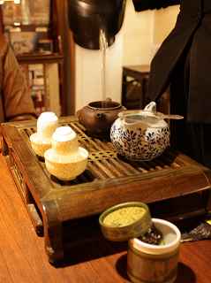 工夫茶の点前。スタッフのお姉さんが非常にキュートで親しみの持てる方でした。なお、工夫とは中国語で時間の意味。時間をかけて淹れますよ、と。